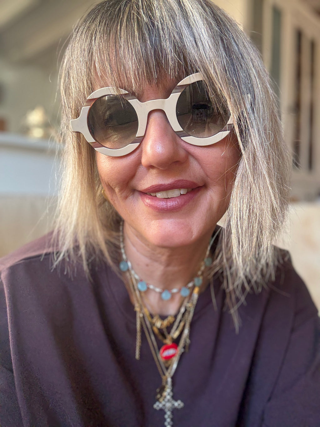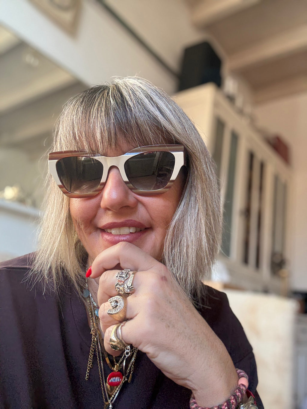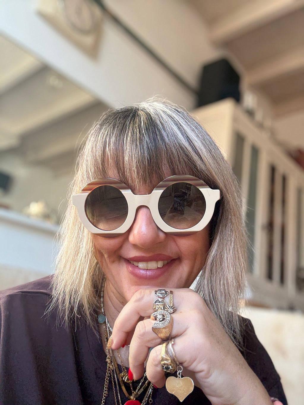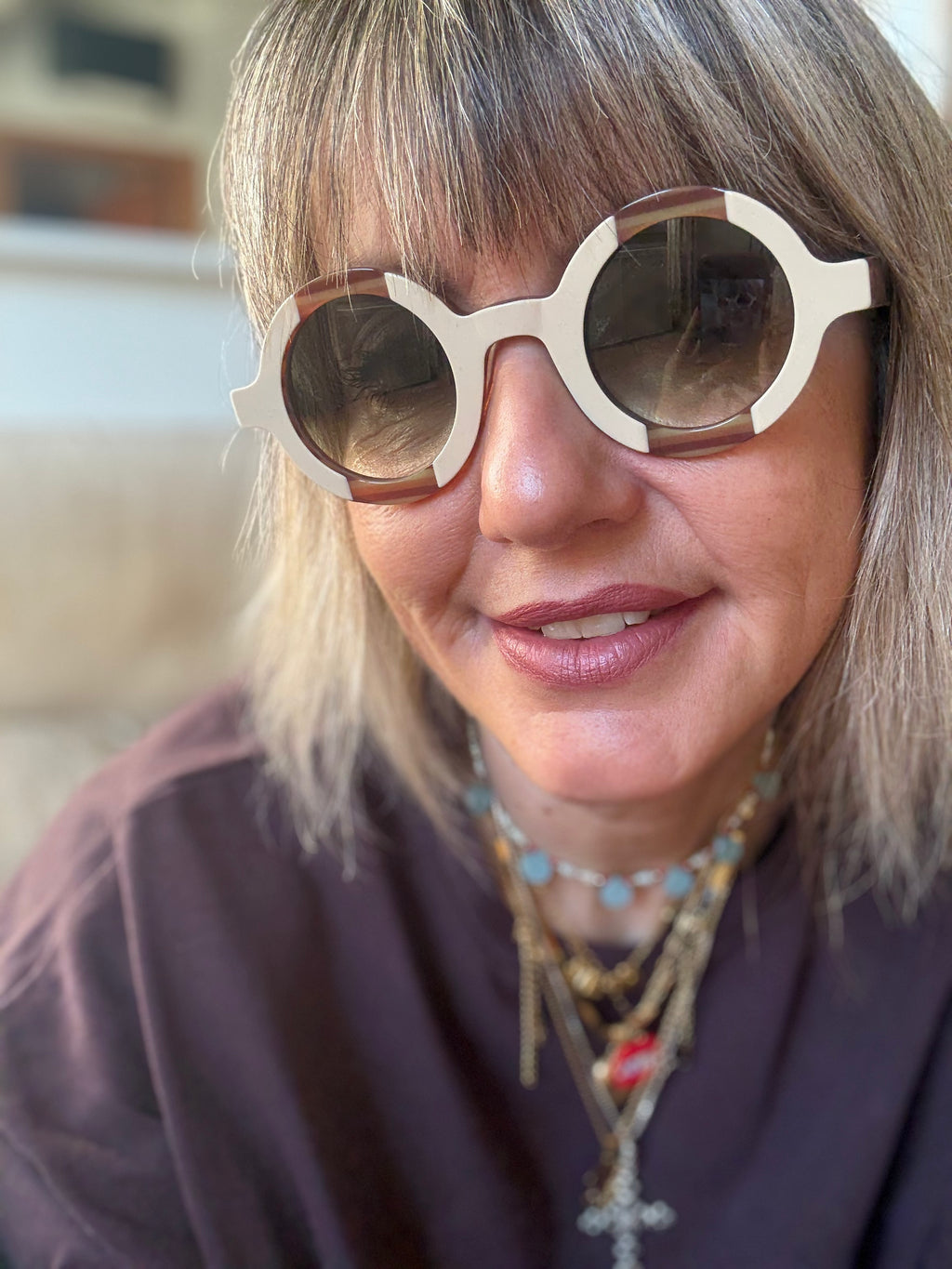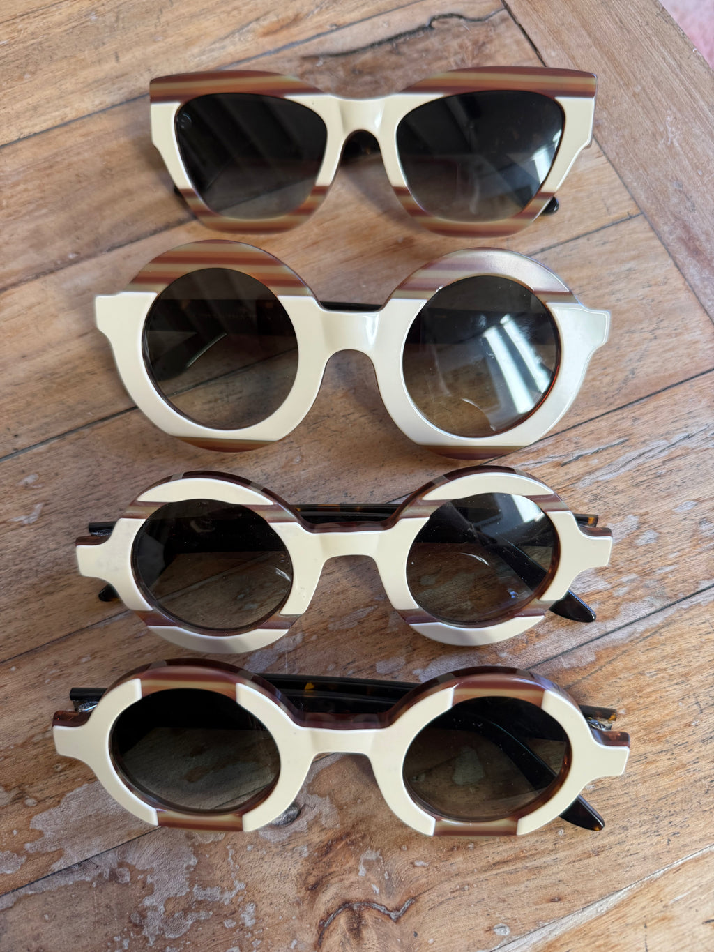 Occhiale in acetato , con lenti Zeiss di qualità certificata color grigio verde sfumato. Tutto interamente fatto a mano in Italia.