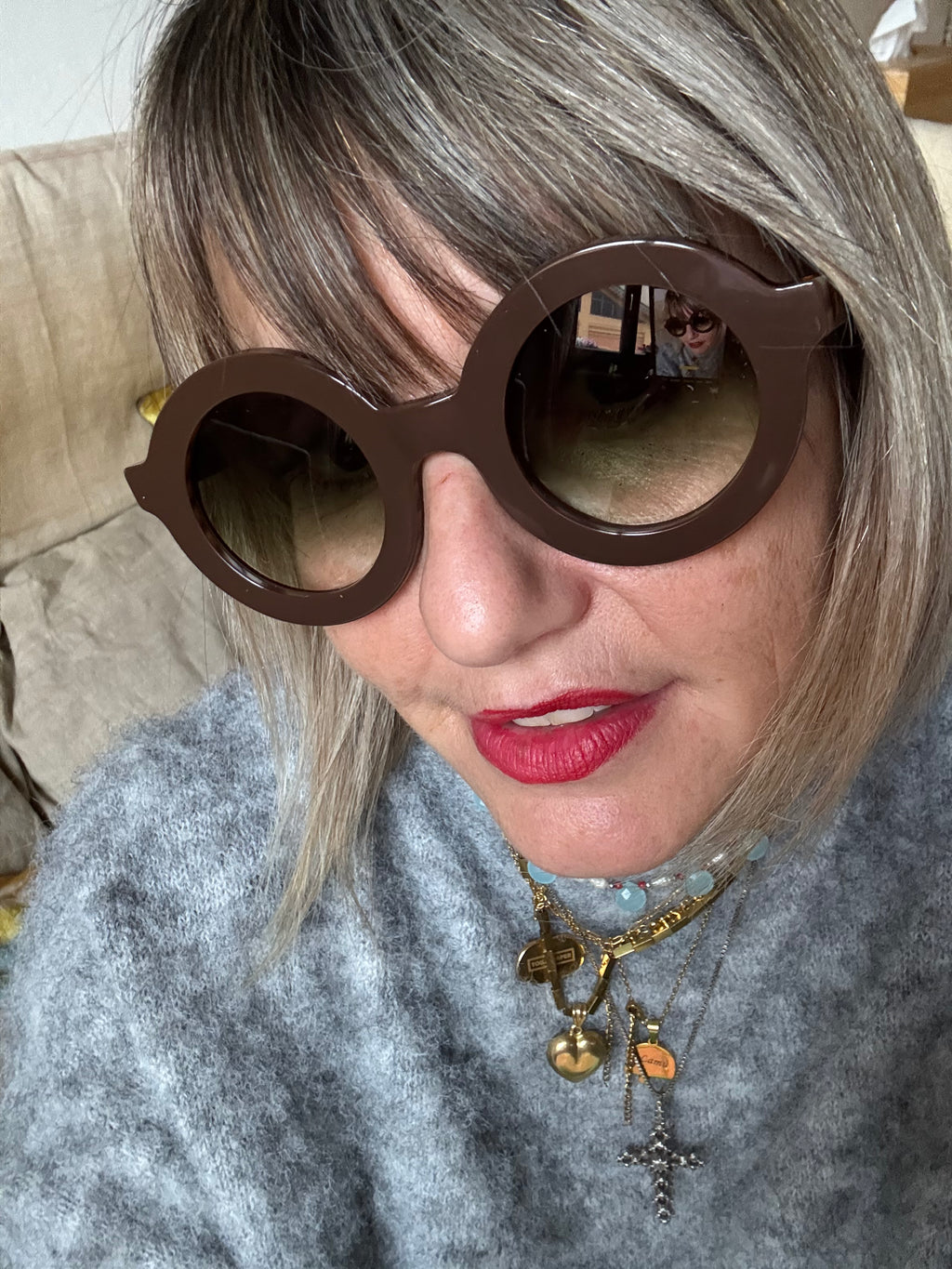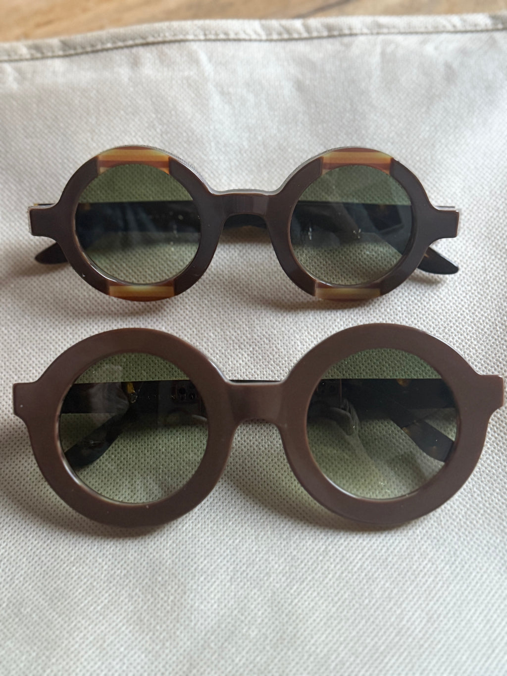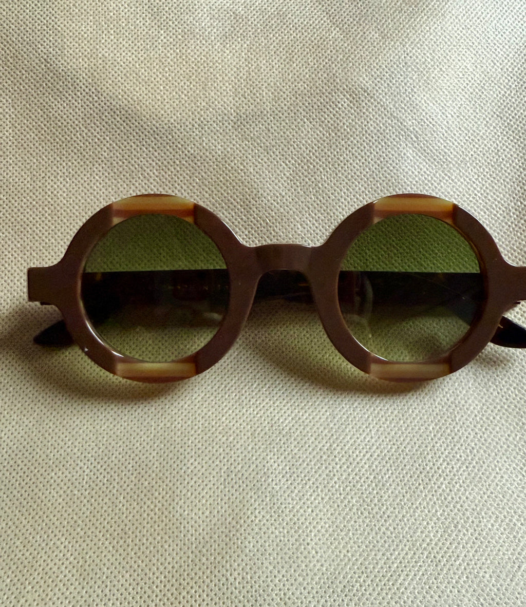 Occhiale in acetato , con lenti Zeiss di qualità certificata color grigio verde sfumato. Tutto interamente fatto a mano in Italia.
