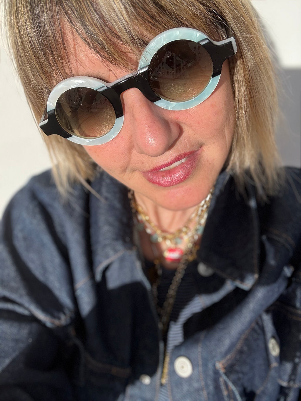 Occhiale in acetato, con lenti Zeiss di qualità certificata color grigio verde sfumato.