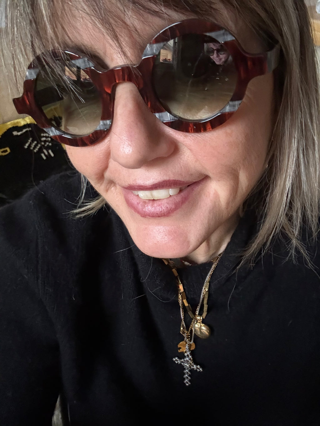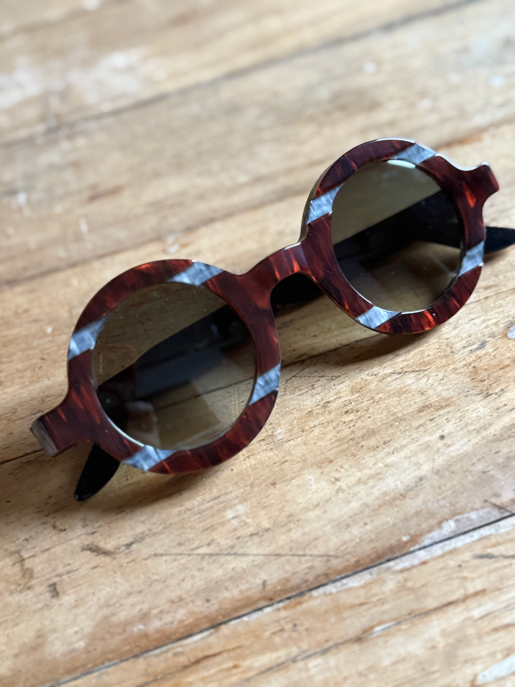 Occhiale in acetato, con lenti Zeiss di qualità certificata color grigio verde sfumato.