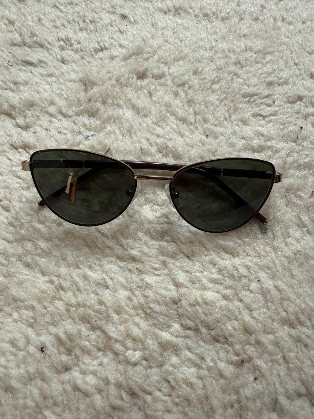 Occhiale in acciaio nero e oro con lenti Zeiss di qualità certificata color verde bottiglia.