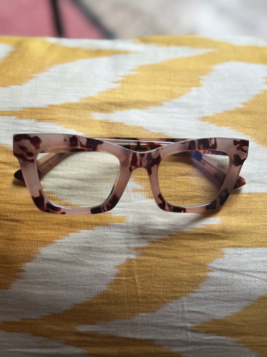 Occhiale in acetato rosso laccato adatto per essere montato da vista .